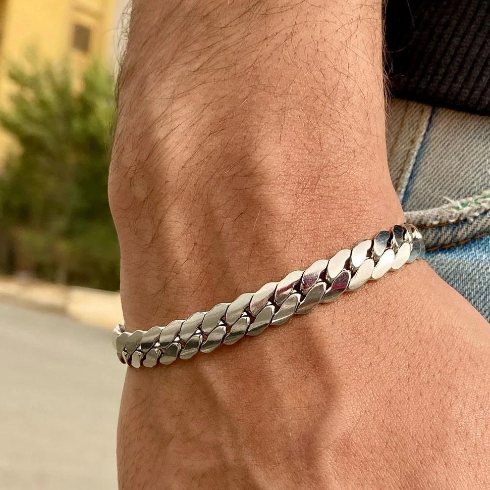 وصف المنتج: انسيال فضي بتصميم كوبان لينك عصري يضيف لمسة فخامة وشياكة لاي لوك.