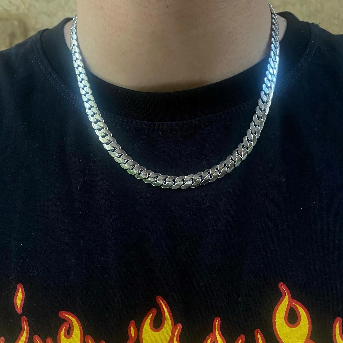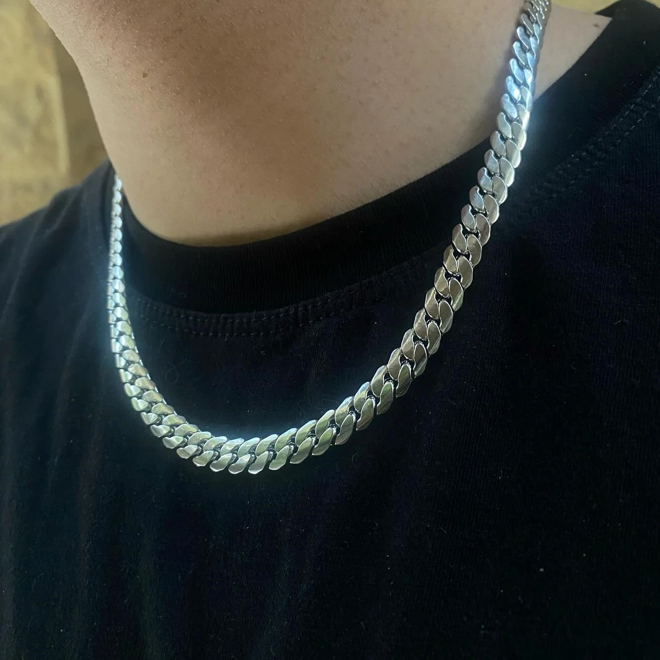 وصف المنتج: سلسلة فضي كوبان لينك عصري تضيف لمسة فخامة وشياكة لاي لوك.