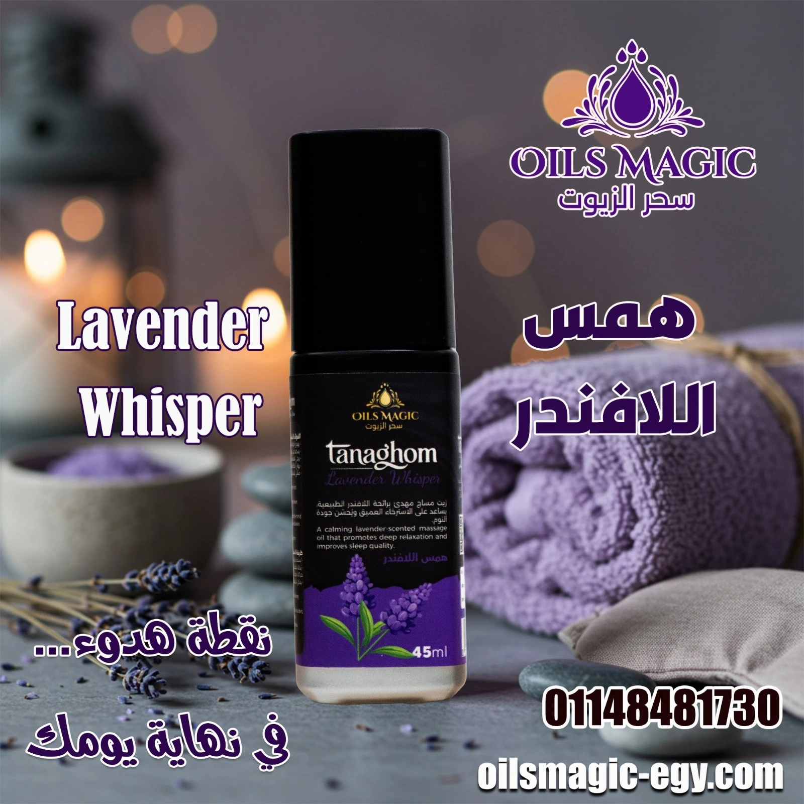 زيت مساج مهدئ برائحة اللافندر الطبيعية، يساعد على الاسترخاء العميق ويُحسّن جودة النوم