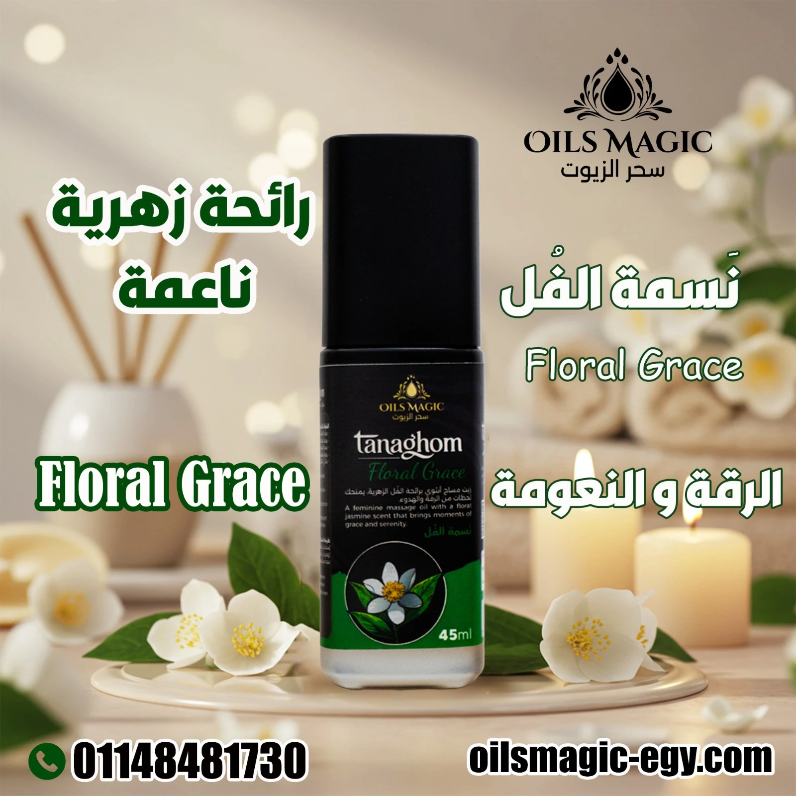 عطر زهري منعش من زيت الفل، يضفي شعورًا بالنقاء والراحة النفسية.